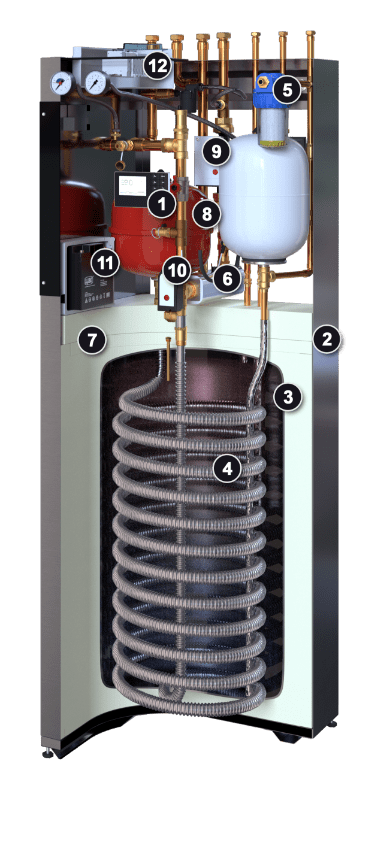 Szafa hydrauliczna montowana w mieszkaniu i jednostka zewnętrzna – pompa ciepła – połączona jest rurami, w których przepływa podgrzana przez pompę ciepła woda do zasilania centralnego ogrzewania i bufora ciepłej wody użytkowej. Układ tej jest prosty w montażu i w przeciwieństwie do pomp ciepła typu SPLIT, w których między jednostką zewnętrzną, a wewnętrzną przepływa czynnik chłodniczy w postaci gazowej, nie wymaga posiadania specjalistycznych uprawnień.